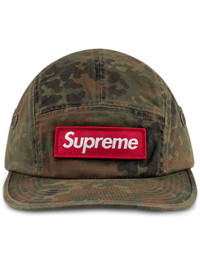 military camp cap Following the brand's bold style, this Supreme camp cap arrives in a green hue highlighted by a camouflage print. Its design is crafted from cotton and features an adjustable strap to the rear. The iconic red box logo appears on the front. Highlights - Green - Cotton - Signature box logo - Embroidered motif - Camouflage print - Flat peak - Adjustable strap to the rear Imported Composition Cotton 100%