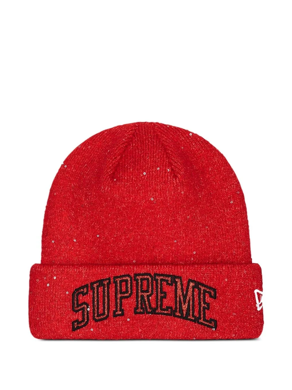 New Era Metallic Arc beanie hat Highlights - Blood red - Melange effect - Round crown - Turn-up brim - Embroidered logo to the front Imported Composition Sequin 100%, Fabric 100%