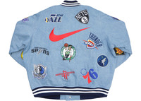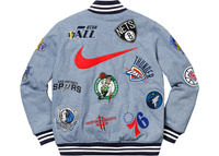 The Supreme NikeNBA Teams Warm Up Jacket Denim is a must-have for basketball fans and streetwear enthusiasts alike. This collaboration between Supreme and Nike features a denim jacket with the logos of all 30 NBA teams embroidered on the front and back. The jacket also includes a Supreme box logo on the chest and Nike swoosh on the sleeve. Crafted from high-quality denim, this jacket is both durable and stylish. The black and white colorway makes it easy to pair with any outfit, while the bold logos add a pop of color and personality. The jacket was released on March 8, 2018, and retailed for $328. Something we love about the Supreme NikeNBA Teams Warm Up Jacket Denim is how it seamlessly blends basketball and fashion. Our experts think the standout feature of this jacket is the attention to detail in the embroidery of all 30 NBA team logos. It's a great way to show off your love for the sport while still looking stylish. Overall, we love the unique collaboration between Supreme and Nike and the high-quality craftsmanship of this jacket. - Season SS18 - Color Denim - Release Date 2018-03-08 - Retail Price 328 - Featured false