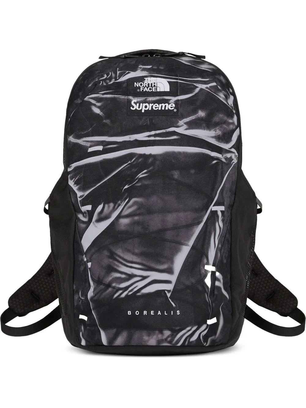 x The North Face Borealis Trompe L'oeil "Black" backpack Highlights - Black - Two-way zip fastening - Trompe l'oeil print - Single top handle - Two adjustable shoulder straps - Logo patch to the front - Two side pouch pockets Imported Composition Outer: Mesh 100%