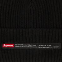 Supreme's Property Label beanie is rib-knitted in black. Made for the FW22 season, the hat features a woven patch with the brand's logo and trademark detailing.