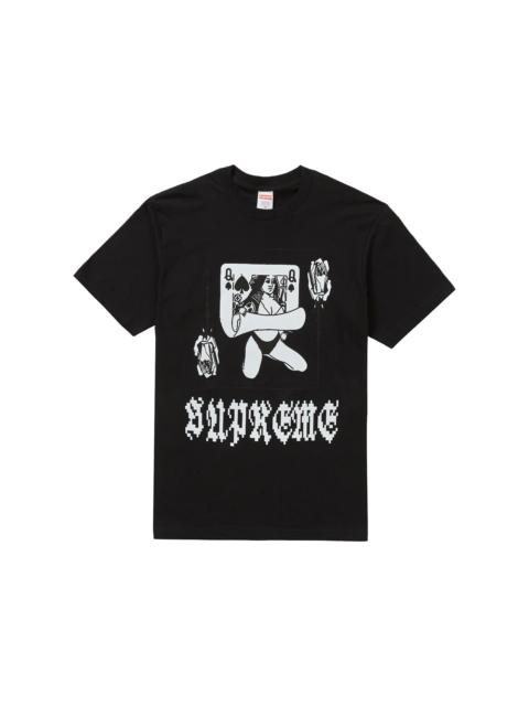 Supreme's Queen Tee was released as a part of Supreme's FW19 Week One drop. The tee was released in 8 colors and features a graphic that says Supreme on the front below a Queen playing card pulled back to reveal a woman underneath. The Supreme Queen Tee was released on August 22nd, 2019 and retailed for $38 USD. - Season FW19 - Color White - Release Date 2019-08-22 - Retail Price 38 - Featured false