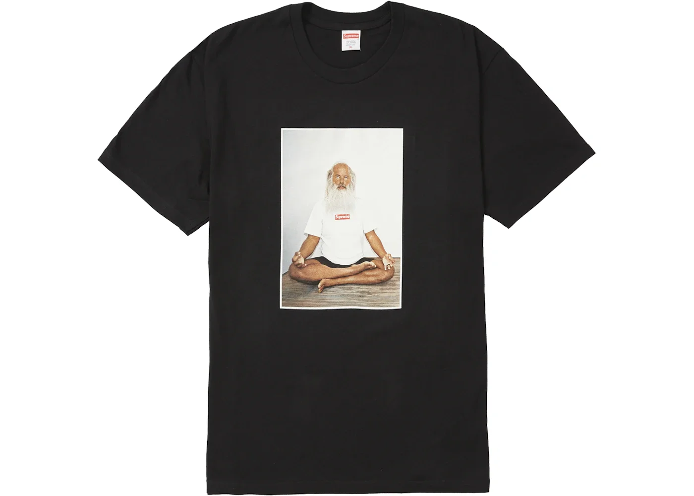Constructed of 100% cotton, the Supreme Rick Rubin Tee Black features a photo graphic of world-renowned record producer Rick Rubin meditating in a classic Box Logo Tee. Rick Rubin is famously known for his work with award-winning artists like Red Hot Chili Peppers, LL Cool J, Run-D.M.C., and the Beastie Boys. The Supreme Rick Rubin Tee Black released as part of the Supreme Fall / Winter 2021 collection and retailed for $48. - Season FW21 - Color Black - Release Date 2021-08-19 - Retail Price 48 - Featured false
