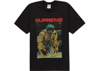 The Supreme Ronin Tee Black is a premium T-shirt produced by Supreme that features a screen-printed graphic on the front and an all-black construction. The bold graphic displays a monstrous man with green hair, orange arms, and a predatory stance. His body is muscular and he’s only wearing jeans, putting his full chest on display. This extra-large image takes up most of the front of the shirt. Across the upper chest, ‘SUPREME’ is printed in boxy, orange letters. The T-shirt boasts a regular fit and is constructed from 100 percent cotton. It also has short sleeves and a traditional crew neckline. Our experts like the ‘Ronin’ lettering across the shoulders. This element comes in a vibrant orange that matches the orange on the front of the T-shirt. The Supreme Ronin Tee Black was released on April 20, 2023, as part of the Spring/Summer 2023 collection, and retailed at $48. - Season SS23 - Color Black - Release Date 2023-04-20 - Retail Price 48 - Featured false - Uploaded By LL