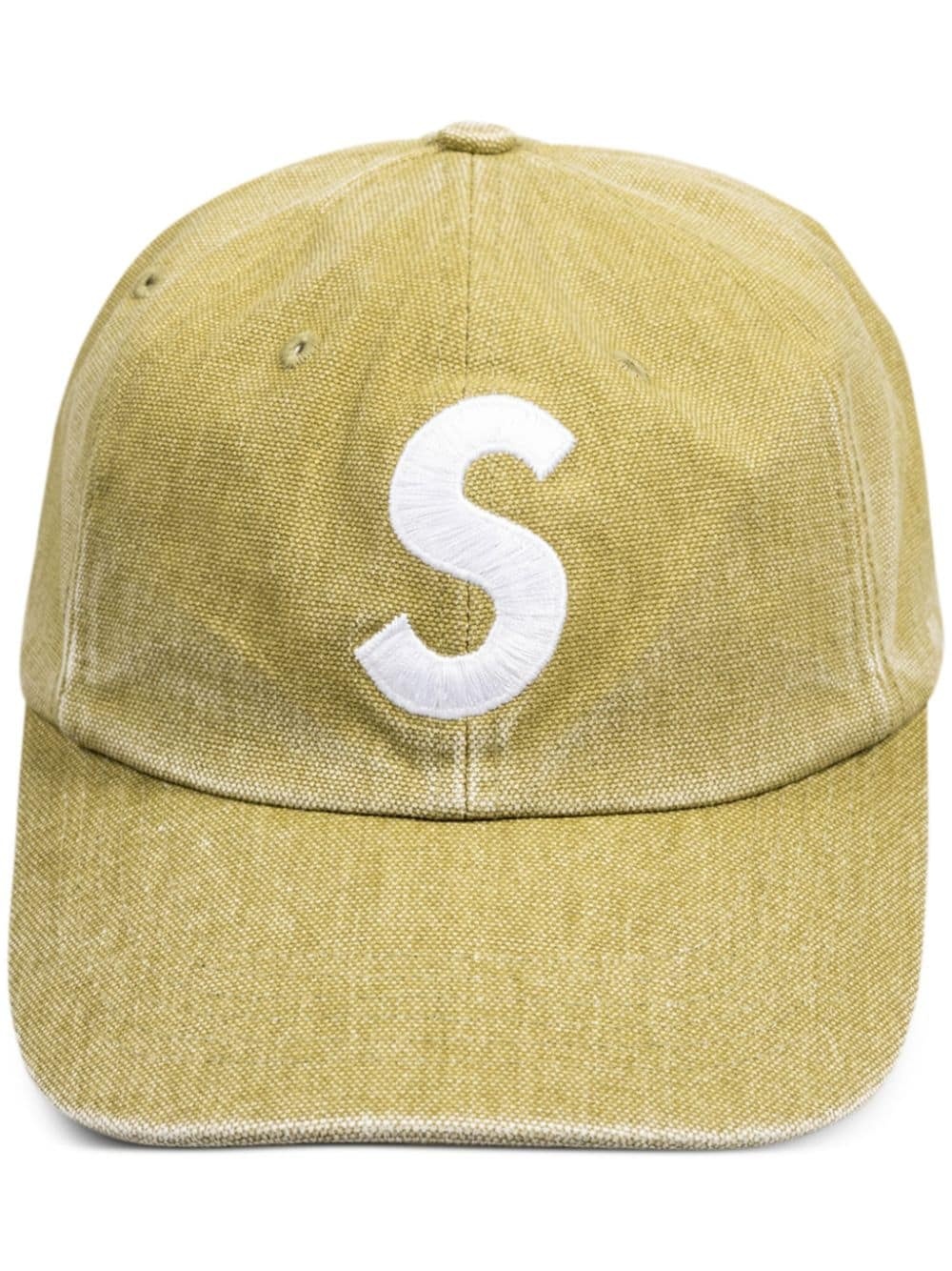 S Logo baseball cap Boasting a six-panel construction, this Supreme cap is crafted from canvas that's pigment dyed an olive green colourway. It features white embroidered logos on the front and back and is finished with an adjustable strap for a tailored fit. Highlights - Olive green - Canvas - Embroidered logo to the front - Embroidered logo to the rear - Six-panel construction - Curved peak - Adjustable fit Imported Composition Canvas 100%