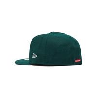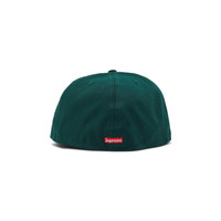 This Supreme New Era cap features an "S" logo with horns on the front. Made for the FW22 season, the hat is rendered in green and embroidered with New Era's signature branding on the side.