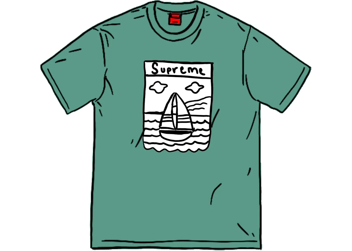 Released as a part of SS20's Week 8 release, the Supreme Sailboat Tee was among seven spring tees to drop. The Sailboat Tee features an original artwork by Joe Roberts of a sailboat in the water with UFO's flying around it and a painted Supreme logo above the painting. The Supreme Sailboat Tee released on April 16th, 2020, and retailed for $38 USD. - Season SS20 - Color Dusty Teal - Release Date 2020-04-16 - Retail Price 38 - Featured false