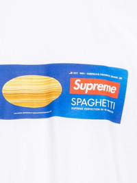 Spaghetti short-sleeve T-shirt from SUPREME featuring white, cotton, graphic print at the chest, logo print to the front, round neck, short sleeves and straight hem. Highlights - White - Cotton - Graphic print at the chest - Logo print to the front - Round neck - Short sleeves - Straight hem Made in United States Composition Cotton 100%
