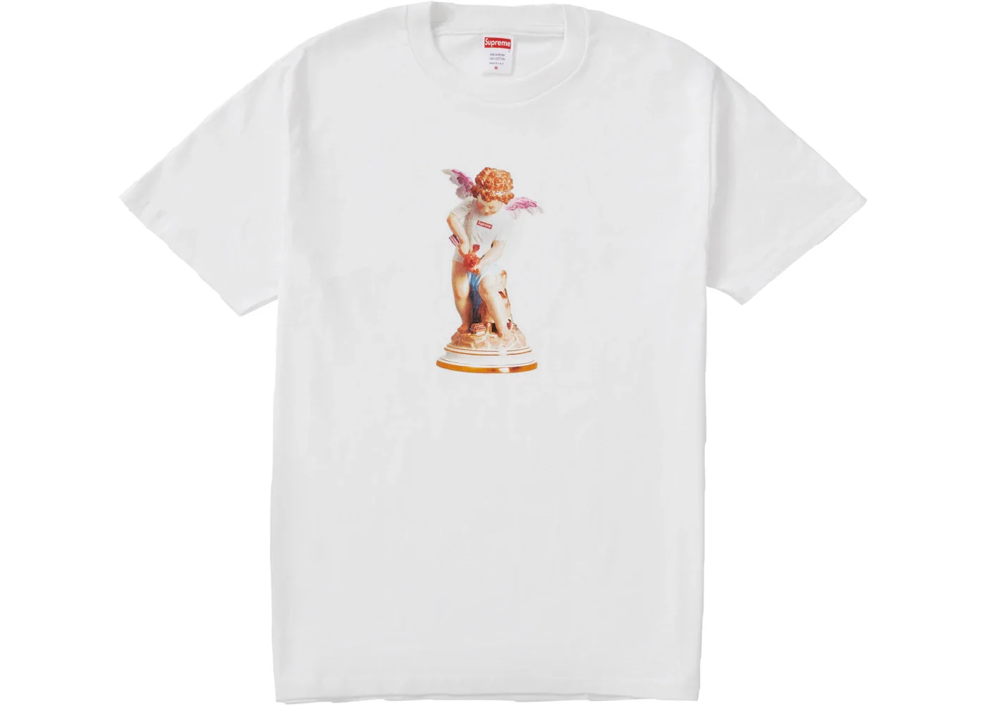 Supreme's Cupid Tee released as a part of the brand's larger drop of tees during Week 6 of their Spring/Summer 2019 collection. The tee features a product photo of the Week 3 Supreme®/Meissen® Hand-Painted Porcelain Cupid Figurine on the chest. While the figures retailed at nearly $4000 USD, the tees retailed for a modest $38 USD, so if 4K is a little steep for you, the tee may be a little more attainable. The Cupid Tee was released on Thursday April 4th, 2019. - Season SS19 - Color White - Release Date 2019-04-04 - Retail Price 38 - Featured false