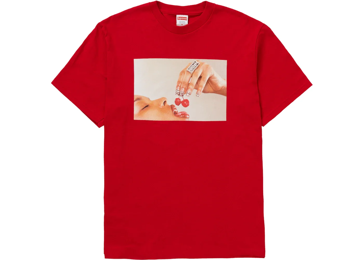 Supreme released an assortment of more than ten different tees as a part of their SS20 Week One release. The Supreme Cherries Tee features an image crop of a woman seductively eating cherries. The tee was released in nine colors. The Supreme Cherries Tee released on February 20th, 2020, and retailed for $38 USD. - Season SS20 - Color Red - Release Date 2020-02-20 - Retail Price 38 - Featured false