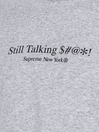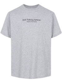 Still Talking crew-neck T-shirt Following the brand's casual yet bold style, the Still Talking T-shirt from Supreme's AW22 collection arrives in a grey hue, enhanced by a slogan print on the front and a logo print on the back. Its design is crafted from cotton and has a straight, relaxed cut. Made in United States Composition Cotton 100%