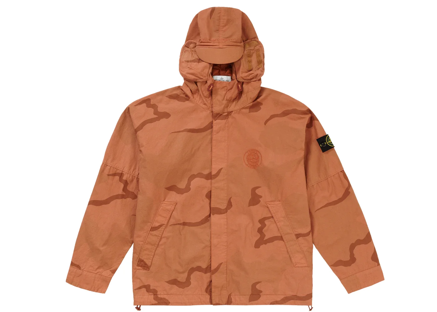 The Supreme Stone Island Riot Mask Camo Jacket Coral Camo is a water-resistant brushed cotton jacket that blends streetwear aesthetics with functional design.The Coral Camo Supreme Stone Island Riot Mask Camo Jacket is crafted from water-resistant brushed cotton canvas and showcases a two-toned coral camouflage pattern attained through pigment overdying. The jacket comes with a full-zip front with a snap-button placket, a fixed hood with a visor and side flaps that secure to the face using Velcro straps, and angled hand pockets with windproof openings. Internal elastic shock cords at the hood and hem allow for an adjustable fit, while a removable riot mask adds a bold aesthetic. The jacket adds embroidered branding elements, including a Stone Island logo on the sleeve and a Supreme x Stone Island emblem on the chest and back.What our experts love about the Supreme Stone Island Riot Mask Camo Jacket Coral Camo is its fusion of streetwear aesthetics with functional design, resulting in a jacket that looks good and delivers on performance. The jacket debuted on the March 14, 2019, and retailed for $648. - Season SS19 - Color Coral Camo - Release Date 2019-03-14 - Retail Price 648 - Featured false