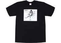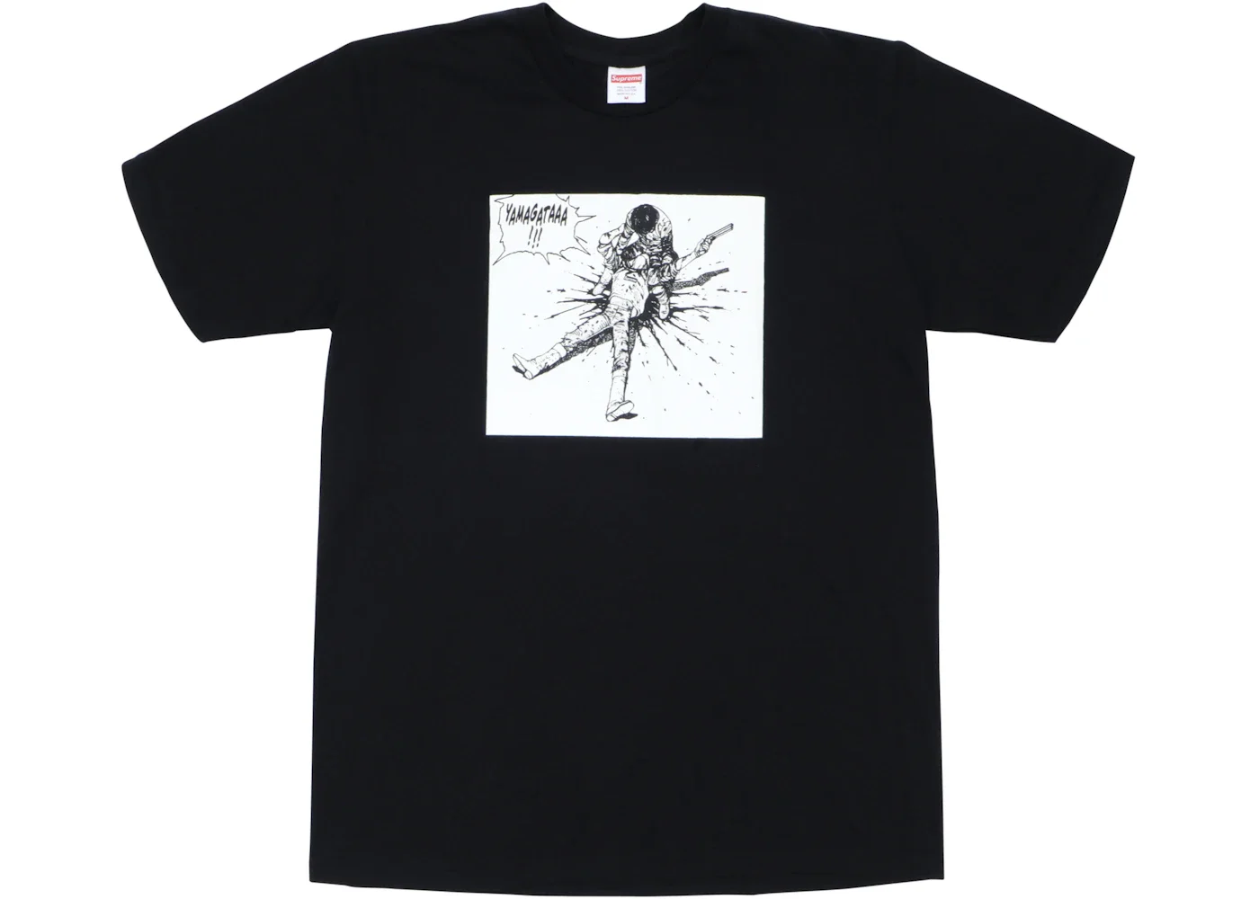 The Supreme AKIRA Yamagata Tee Black is inspired by the events surrounding the life of Yamagata in Akira, a Japanese manga with illustration from Katsuhiro Otomo. The black hue cladding of the Supreme AKIRA Yamagata Tee features on the ribbed crewneck and the piping that separates it from the body. Some white hits arise from the neck label, which has the Supreme box logo in red and black imprints of washing instructions. The garment’s material is 100% cotton for a comfy feel on the skin. On the chest are more white accents from a screen-printed image. It captures an intense moment in Akira when Yamagata and Tetsuo are in the middle of a disagreement. The word Yamagata is conspicuous in the top left corner of the photo. The subtle details on the graphic imprinted on this tee’s front are among its most outstanding features. These include the Supreme emblem on the downed Yamagata. The Supreme AKIRA Yamagata Tee Black was released on November 2nd, 2017, at $48. - Season FW17 - Color Black - Release Date 2017-11-02 - Retail Price 48 - Featured false
