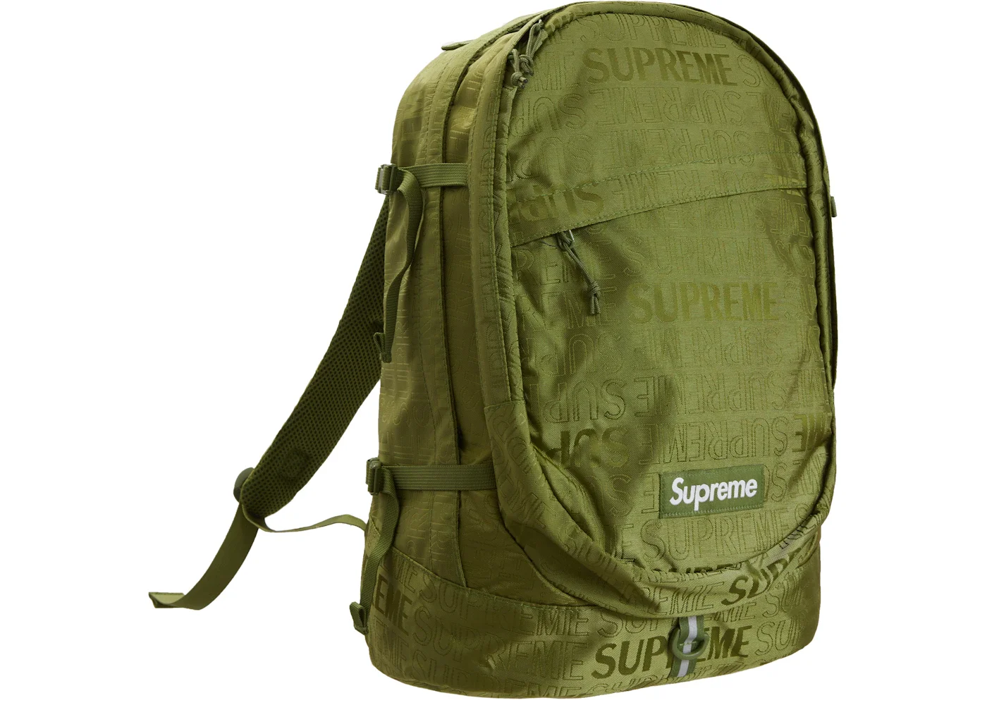 For their first SS19 drop, Supreme’s backpack lineup featured an all-over jacquard logo pattern and a small box logo near the bottom. This green cordura backpack has a capacity of 25 liters. The bag released in 4 colors on February 21st, 2019 and retailed at $158 USD. - Season SS19 - Color Olive - Release Date 2019-02-21 - Retail Price 158 - Featured false