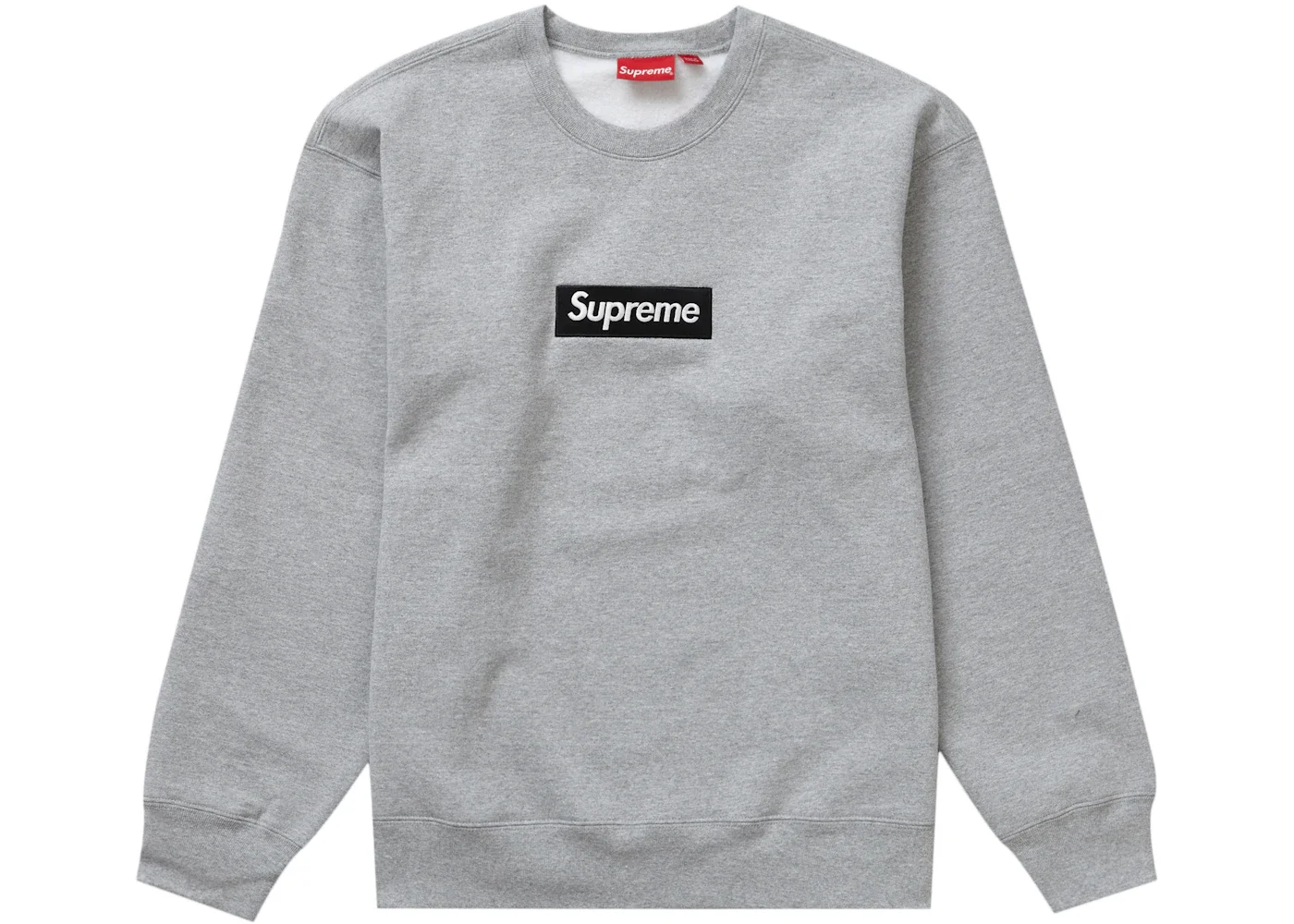 The Supreme Box Logo Crewneck (FW22) Heather Grey has a relaxed fit - squared silhouette and comes with raglan sleeves. Made of a combination of cotton and polyester fabrics, this garment features an all-heather gray colorway. It can also be line dried, flat-dried or hand-washed. The crew neck sweatshirt has ribbed cuffs and hems with double stitches on its neck. Additionally, it boasts a black box Supreme logo on its chest, and one of the brand´s red label tags that completes the design. The Supreme Box Logo Crewneck (FW22) Heather Grey was released on the market on December 8th, 2022. Originally it had a retail price of $170. - Season FW22 - Color Heather Grey - Release Date 2022-12-08 - Retail Price 158 - Featured false