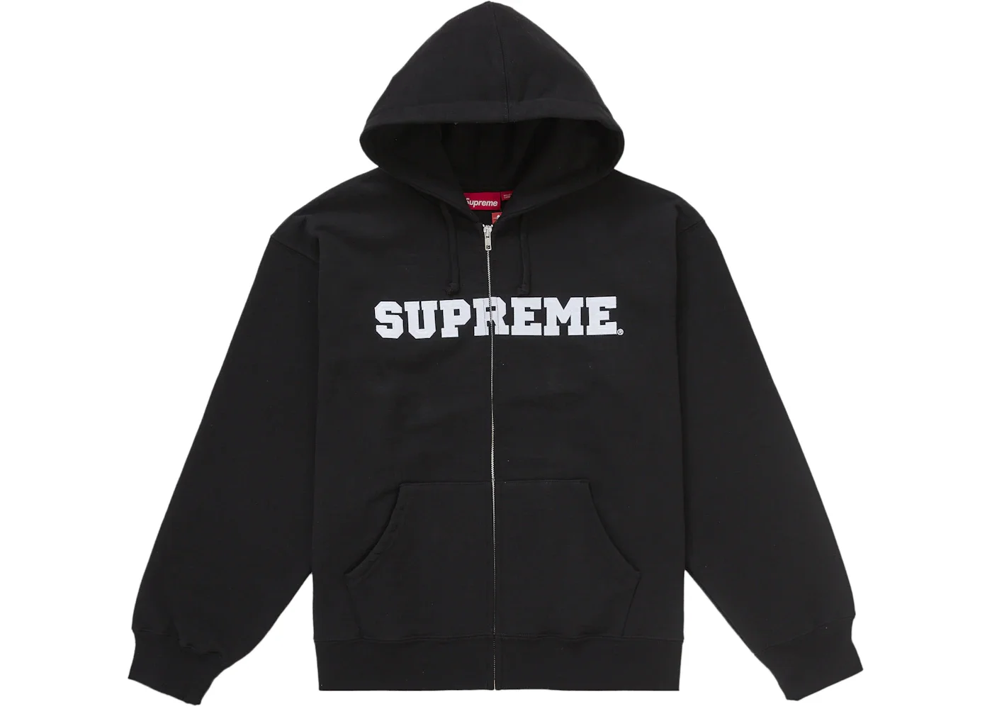 Supreme Collegiate Applique Zip Up Hooded Sweatshirt Black