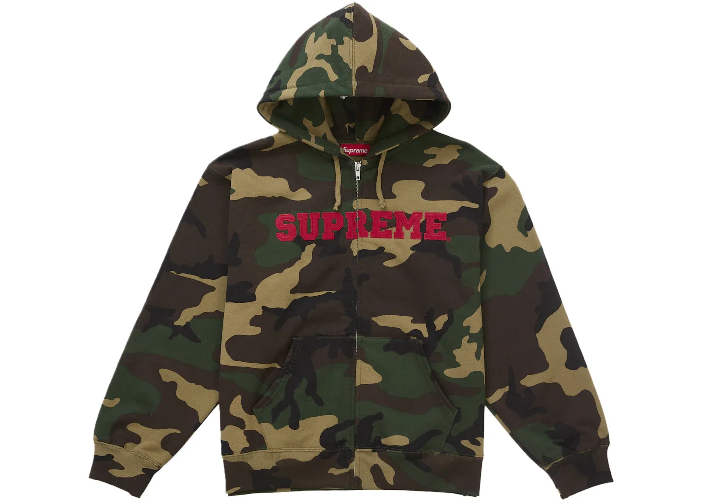 Supreme Collegiate Applique Zip Up Hooded Sweatshirt Woodland Camo
