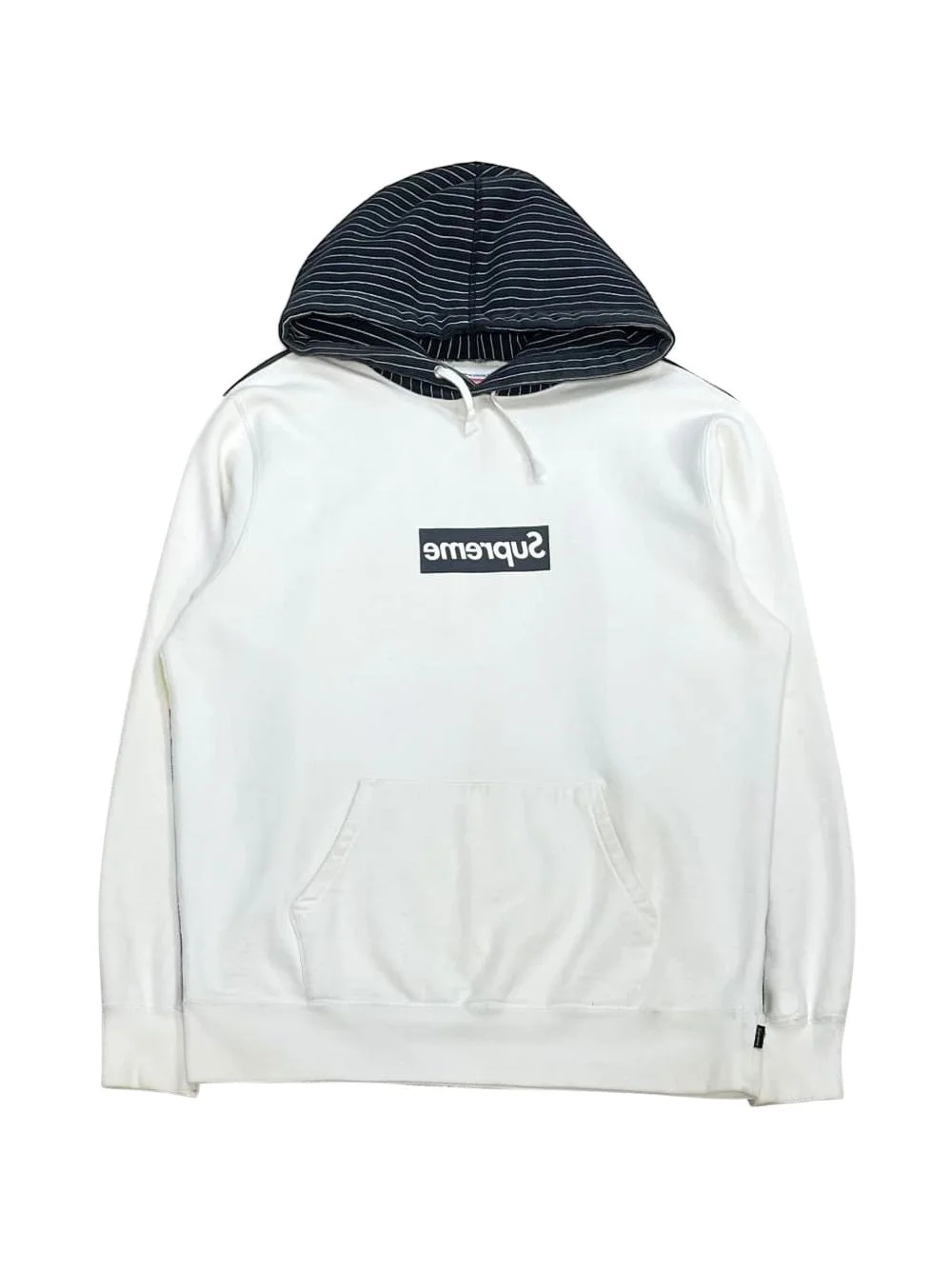 x Comme Des Garcons striped hoodie Highlights - White - Striped hood - Logo detail - Long sleeves - Ribbed cuffs and hem Imported Composition Fabric 100% Washing instructions Read Manufacturer Guidelines