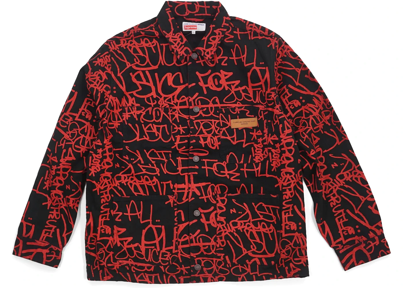 Supreme Comme des Garcons SHIRT Printed Canvas Chore Coat Black