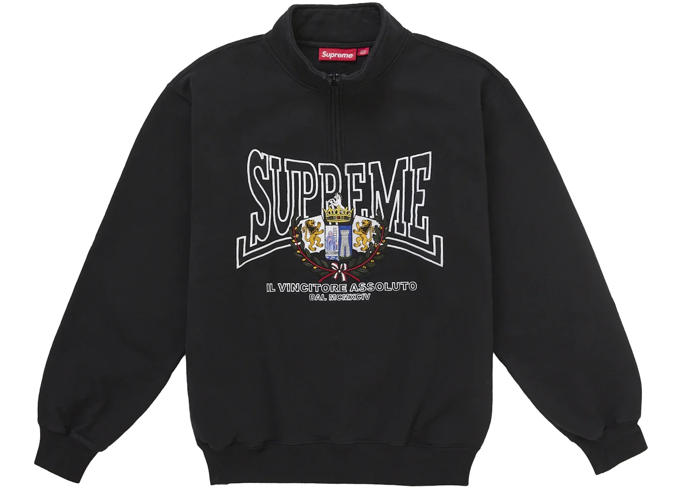Supreme Crest Applique Half Zip Pullover Black