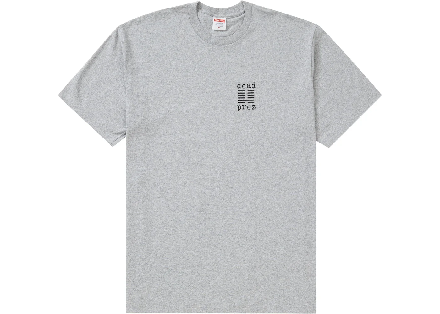 Supreme's FW19 Week 15 drop featured a collaboration with late 1990's and early 2000's hip hop duo, dead prez. The collaboration resulted in a collection featuring original album artwork from dead prez's albums, "Let's Get Free" and "RBG: Revolutionary But Gangsta." The Supreme dead prez Tee released in five colorways and features dead prez's Shi Hexagram logo on the right chest and on the back. The Supreme dead prez Tee released on December 5th, 2019, and retailed for $48 USD. - Season FW19 - Color Heather Grey - Release Date 2019-12-05 - Retail Price 48 - Featured false