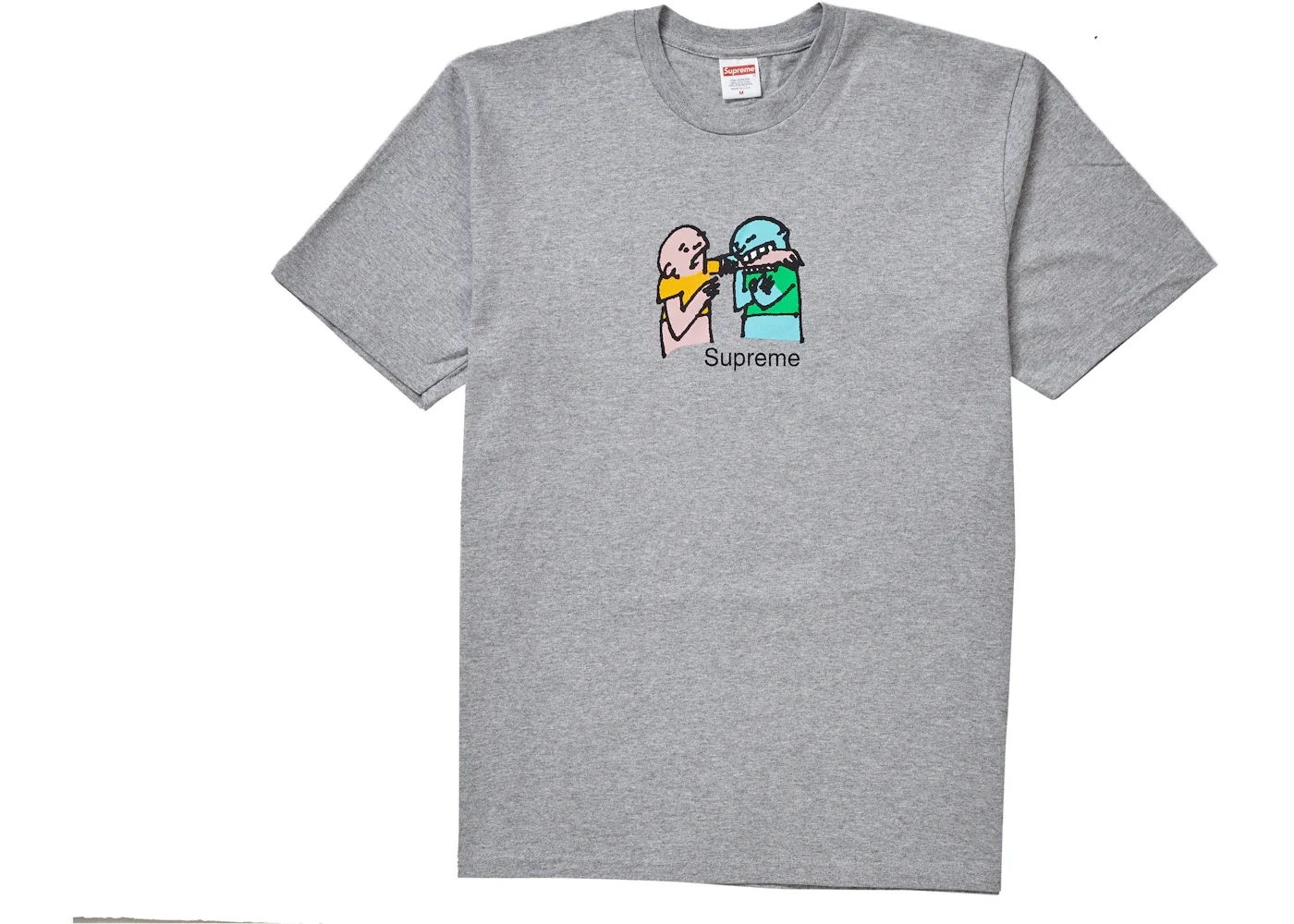 For their FW19 Week 17 release, Supreme released not only their Bandana Box Logo Tees but also an assortment of seven other winter tees. The Supreme Bite Tee released in seven different colorways and features a cartoon artwork of one person biting another persons arm. The Supreme Bite Tee released on December 19th, 2019 and retailed for $38 USD. - Season FW19 - Color Heather Grey - Release Date 2019-12-19 - Retail Price 38 - Featured false