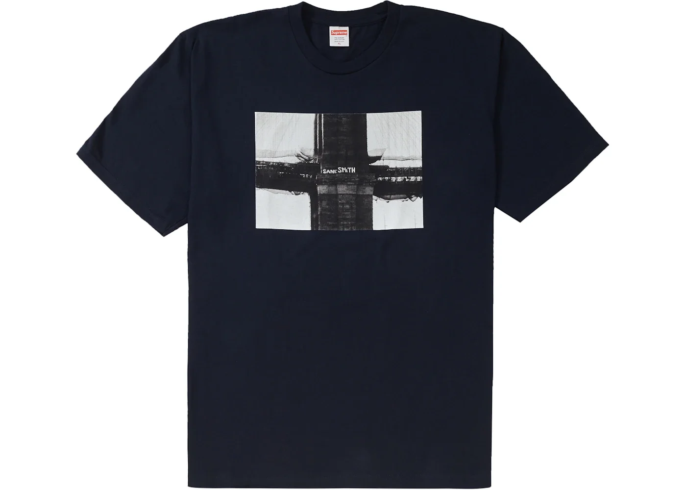 For their FW19 Week 17 release, Supreme released not only their Bandana Box Logo Tees but also an assortment of seven other winter tees. The Supreme Bridge Tee released in eight colorways and pays homage to New York Graffiti duo Sane + Smith. The photo on the front of the tee depicts graffiti the two did on the Brooklyn Bridge for which they were sued for $3 million. The Supreme Bridge Tee released on December 19th, 2019, and retailed for $38 USD. - Season FW19 - Color Navy - Release Date 2019-12-19 - Retail Price 38 - Featured false