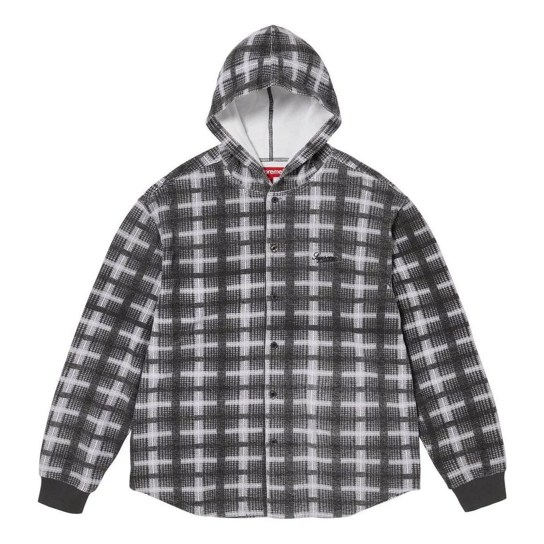 Supreme FW23 Week14 Hooded Plaid Knit Shirt Jacket 'Black' SUP-FW23-224