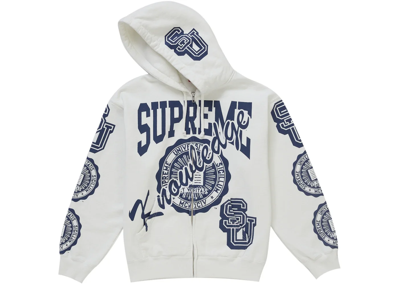 Supreme Knowledge Reigns Zip Up Hooded Sweatshirt White