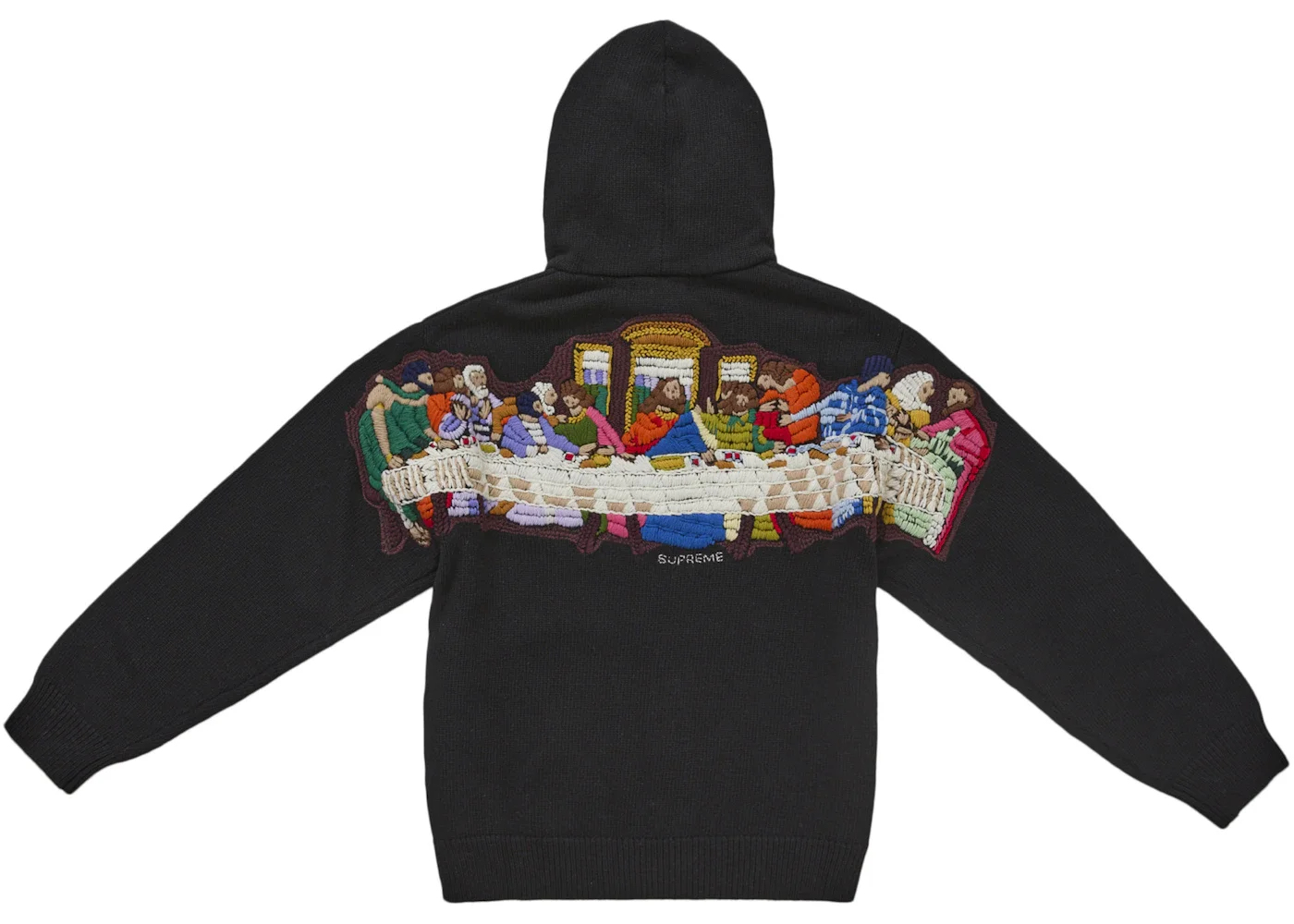 Supreme Last Supper Embroidered Zip Up Hooded Sweater Black