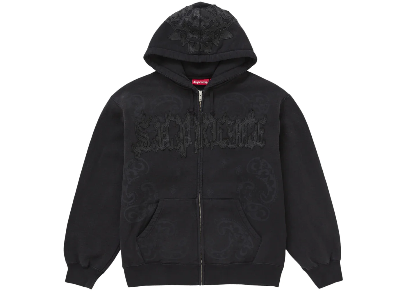 Supreme Leather Applique Zip Up Hooded Sweatshirt Black