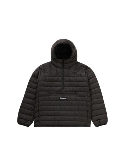 The Supreme Micro Down Half Zip Hooded Pullover (FW22) Blue Paisley has become a part of the Supreme brand´s fall collection as an e-launch. Available in a blue paisley print, this garment is made of Pertex waterproof recycled polyester with a nylon lining, and features a quilted design with baffles and is filled with down. The interior features an elastic shock cord fixed at the hood. Other details include elastic binding on the cuffs, a half-zip closure system, a kangaroo pocket, and a zip pocket at the chest. A woven Supreme logo patch on the zip pocket completes the design. The Supreme Micro Down Half Zip Hooded Pullover (FW22) Blue Paisley was released on October 6th, 2022, retailing at $238. - Season FW22 - Color Blue Paisley - Release Date 2022-10-06 - Retail Price 238 - Featured false