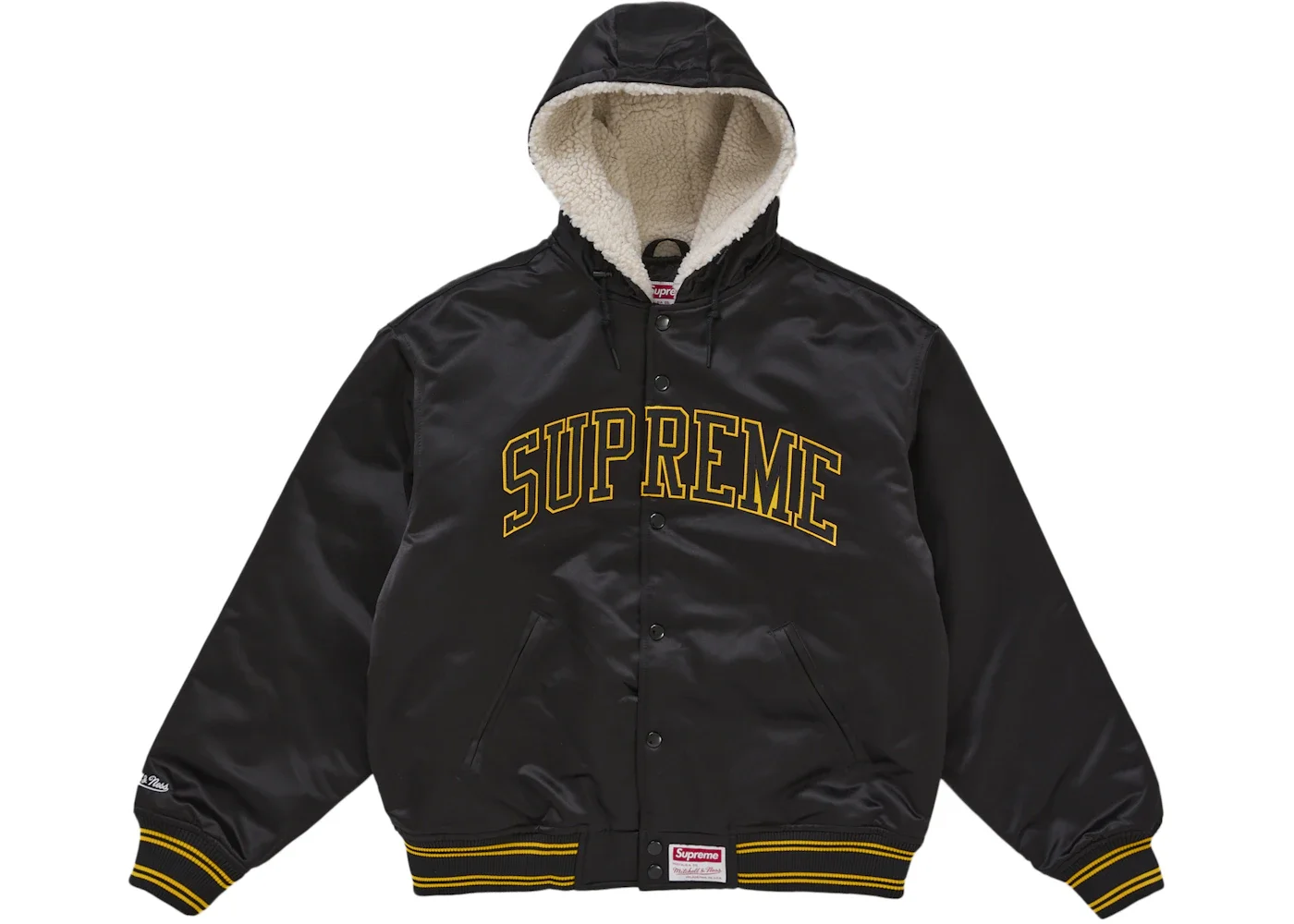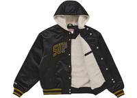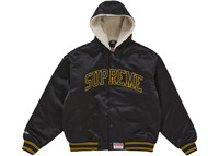 Supreme Mitchell & Ness Lined Hooded Satin Varsity Jacket Black