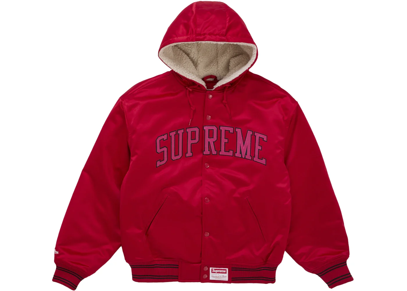 Supreme Mitchell & Ness Lined Hooded Satin Varsity Jacket Red