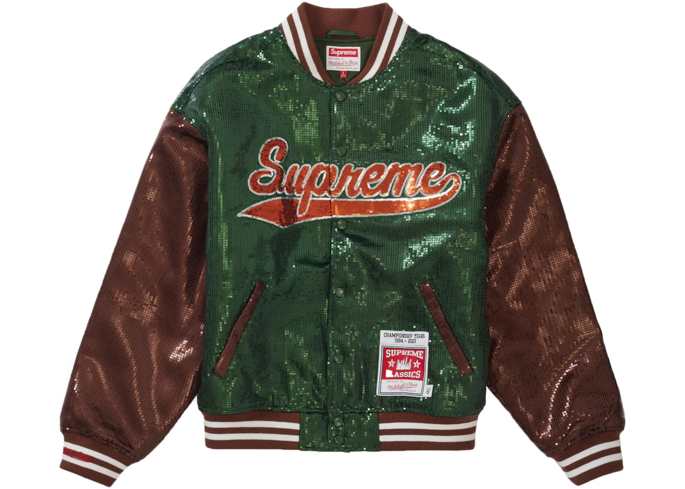 Supreme Mitchell & Ness Sequin Varsity Jacket Green