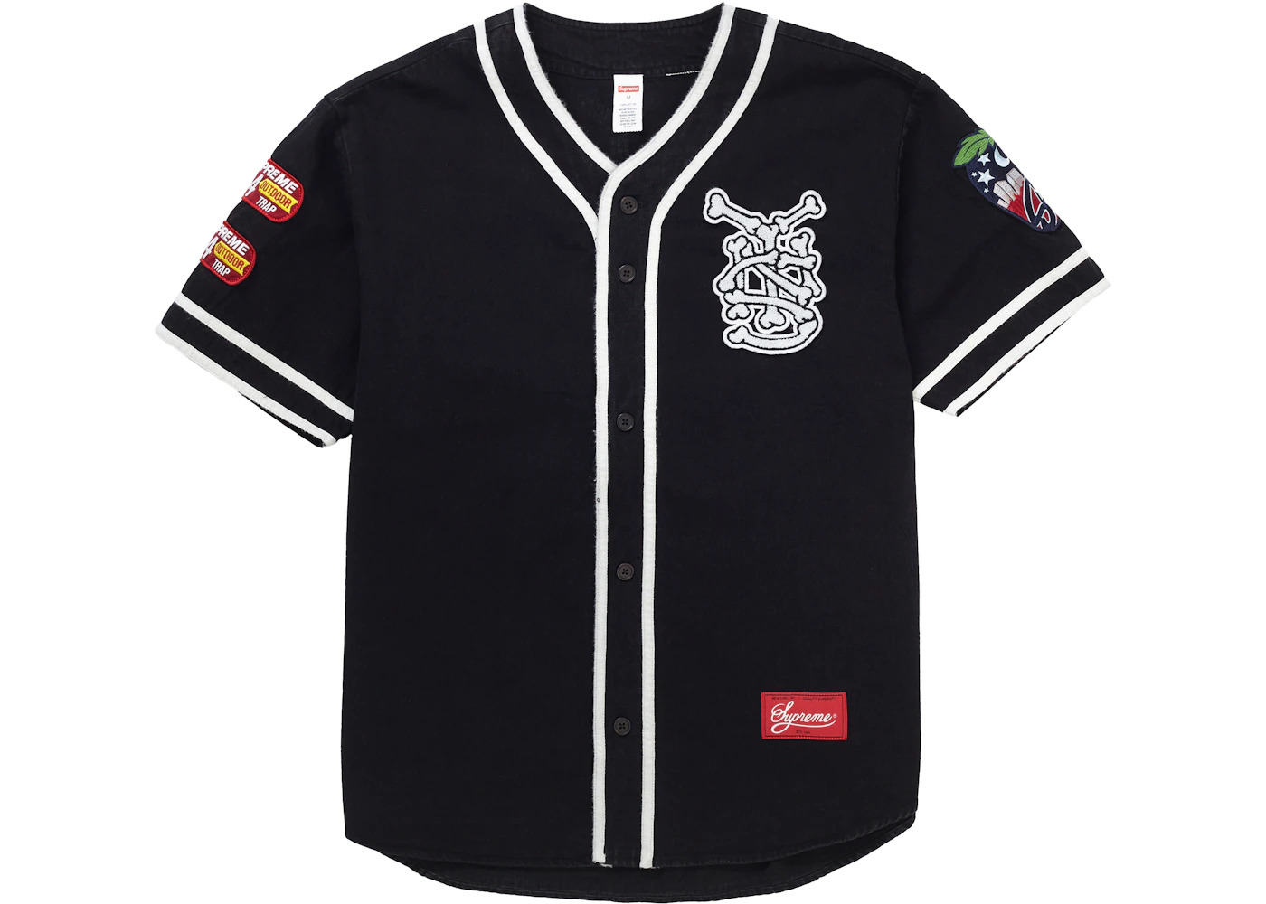 Supreme Patches Denim Baseball Jersey Black