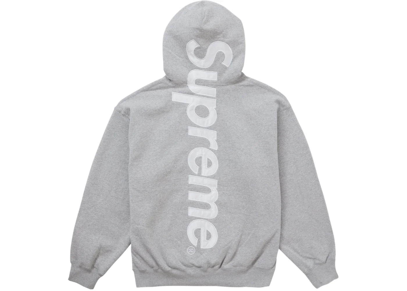 The Supreme Satin Applique Hooded Sweatshirt (FW24) Heather Grey is an all-over heather grey-colored hooded sweatshirt with a kangaroo pouch and relaxed aesthetic. This brushed-back fleece sweatshirt keeps you comfy and warm and doesn‚Aot compromise style. A neutral Heather Grey colorway is a closet staple that complements all looks and works well with layers. With the Heather Grey Supreme Satin Applique Hooded Sweatshirt (FW24), the Supreme branding starts on the back of the hood and nearly meets the waistband. It is in the form of a large white satin logo appliqu√©. Inside the hoodie, there‚Aos a white and red Supreme patch and another on the waistband‚Aos left side. A ribbed waistband and cuffs complete this pullover. StockX experts think that the kangaroo pouch is an added design feature. It keeps your hands warm and can store small essentials. The Supreme Satin Applique Hooded Sweatshirt (FW24) Heather Grey entered the marketplace on September 5, 2024, with a retail price of $158. - Season FW24 - Color Heather Grey - Release Date 2024-09-05 - Retail Price 158 - Featured false - Requester Kelsey K - Uploaded By LL