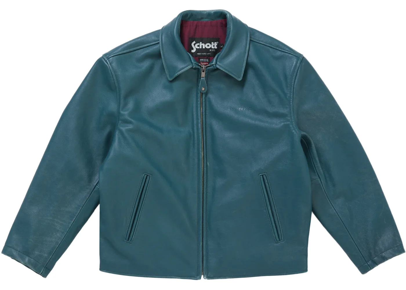 Supreme Schott Leather Racer Jacket (FW25) Teal
