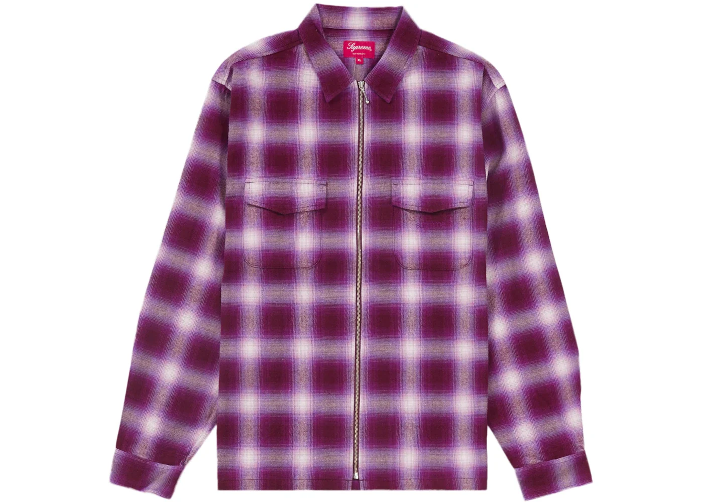 Supreme Shadow Plaid Flannel Zip Up Shirt Magenta