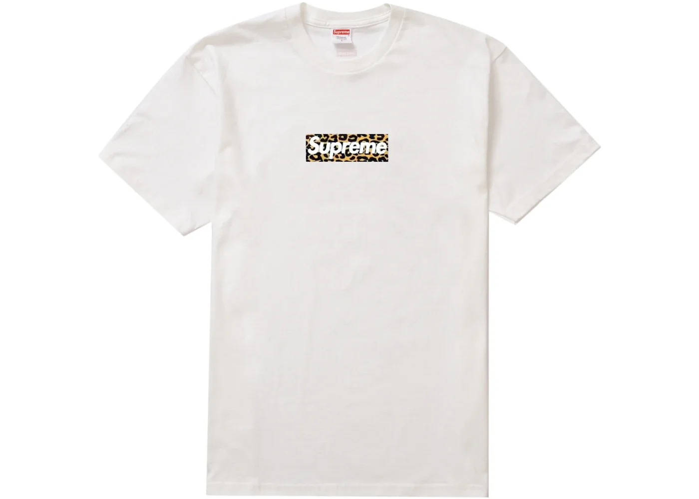 The Supreme Shanghai Box Logo Tee White was designed by the brand in order to celebrate the opening of their new store in Shanghai in March of 2024. This version of the Supreme Shanghai Box Logo Tee appears in a white colorway. The box logo appears on the front of the t-shirt on the chest, with a small leopard-print box containing the Supreme brand name in bold white text. The rest of the t-shirt is void of any design, creating a simplistic look. The cotton material of the shirt allows for extra comfort for the person wearing it. What we like most about this t-shirt is the all-white colorway, which allows the leopard print of the box logo on the front to stand out even more. The Supreme Shanghai Box Logo Tee White was originally introduced on March 23, 2024, for an initial price of $48. - Season SS24 - Color White - Release Date 2024-03-23 - Retail Price 48 - Featured false - Requester Kelsey K - Uploaded By LL