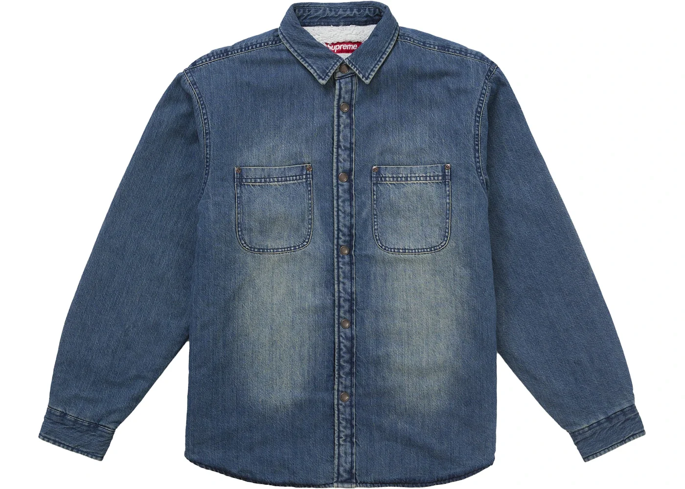Supreme Shearling Lined Denim Work Shirt Overdyed Blue