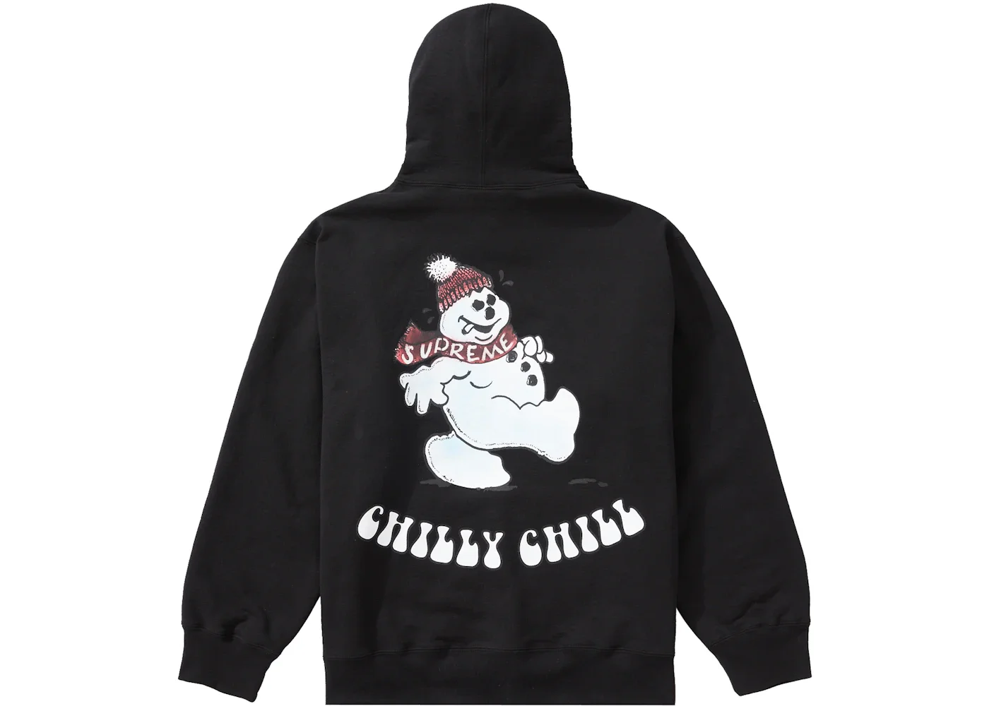 This black Supreme Hoodie was released in November of 2021, as a part of the streetwear brand's Week 13 release of the Fall/Winter 2021 season. The Supreme Snowman Hoodie is made from the brand's popular heavyweight cotton crossgrain fleece material and features a logo on the front above the head of a snowman and a larger snowman graphic on the back of the sweatshirt. This hoodie was released during the same week as Supreme's Missoni collaboration. The Supreme Snowman Hoodie in black was made available at the retail price of $158 on November 18th, 2021. - Season FW21 - Color Black - Release Date 2021-11-18 - Retail Price 158 - Featured false