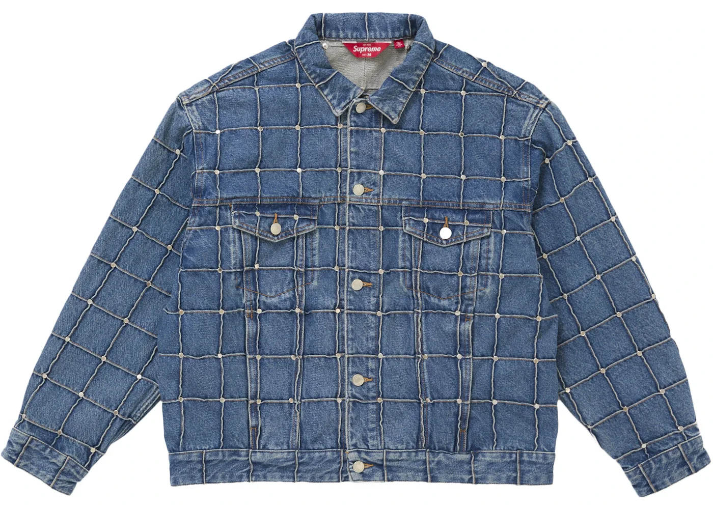 Supreme Studded Seam Denim Trucker Jacket Blue