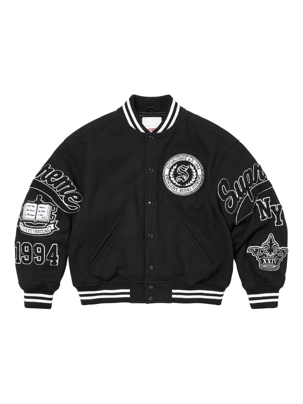 Veritas varsity jacket Highlights - Black - Sleeve logo applique - Ribbed cuffs - Applique chest emblem Imported Composition Fabric 100% Washing instructions Read Manufacturer Guidelines
