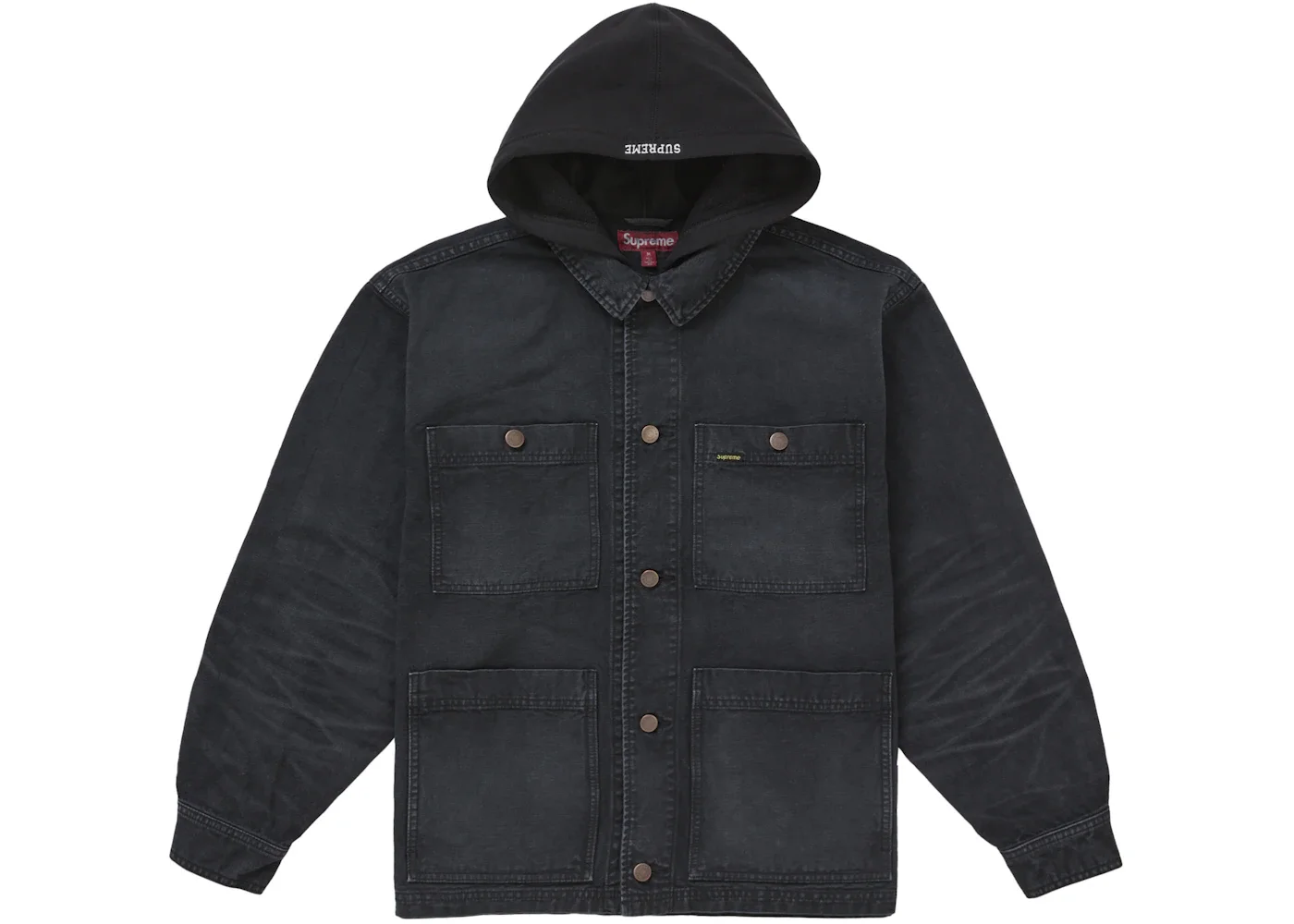 Supreme Worn Hooded Chore Coat Black