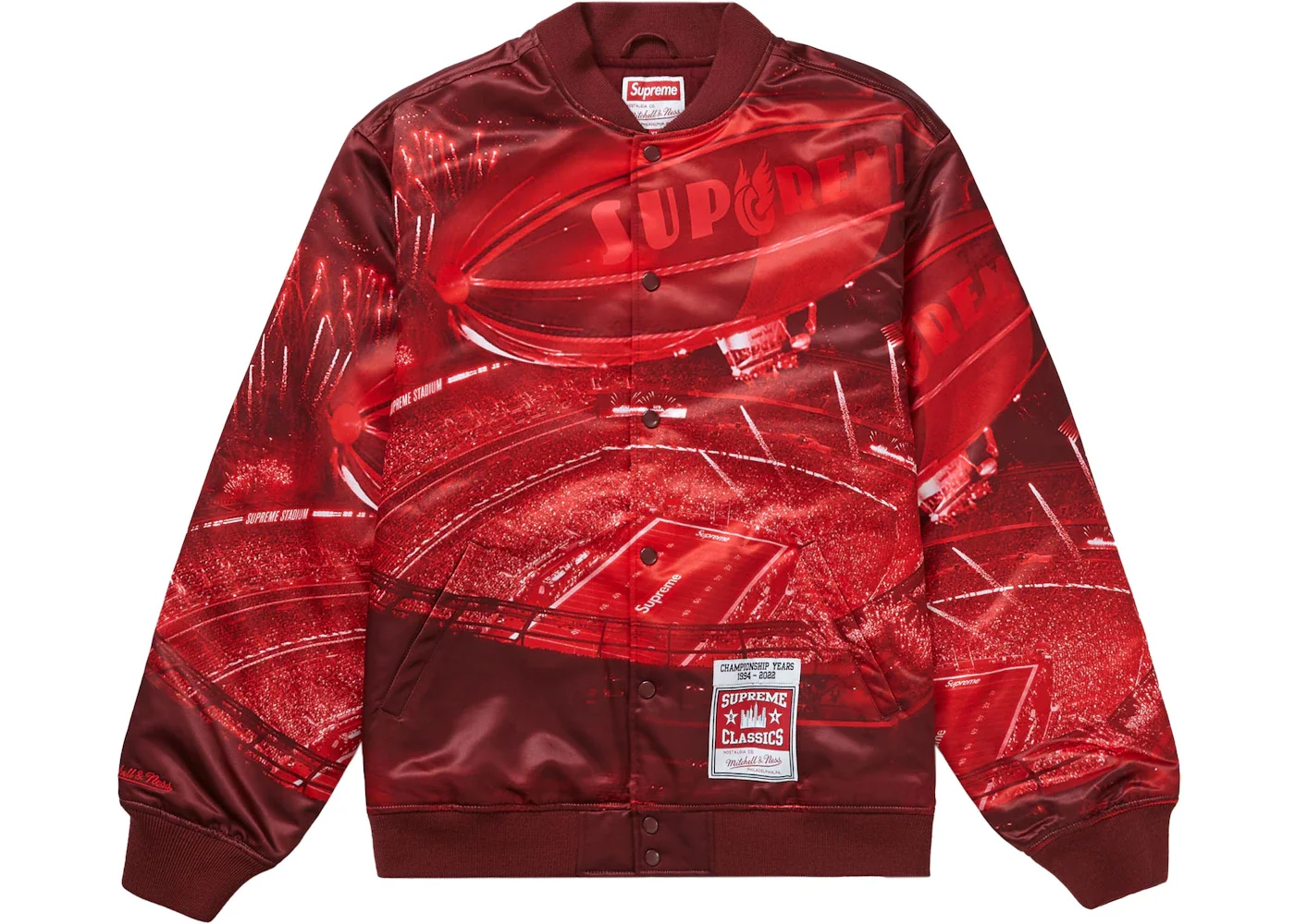 Supreme Mitchell & Ness Stadium Satin Varsity Jacket Red
