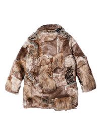 x MM6 Maison Margiela patchwork faux-fur coat Highlights - Brown - Patchwork design - Faux fur - Notched lapels - Long sleeves Imported Composition Artificial Fur 100% Washing instructions Read Manufacturer Guidelines