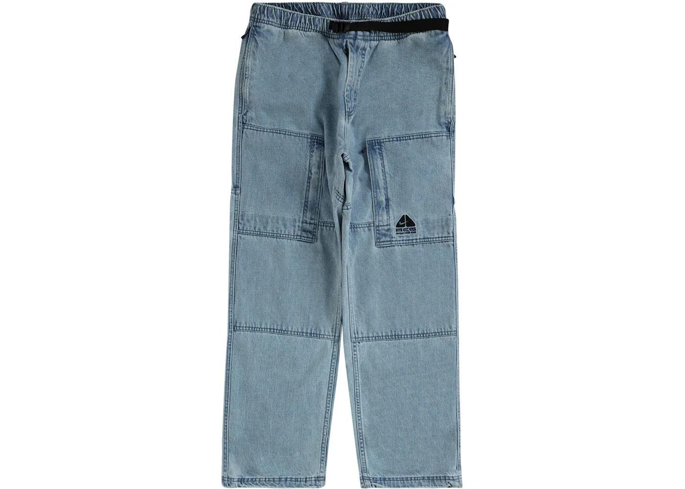Supreme Nike ACG Belted Denim Pant Washed Blue is where urban chic meets functional design, a pair that borrows from trail gear but is built for the street. The Washed Blue Supreme Nike ACG Belted Denim Pant arrives crafted from high-quality denim, offering durability and a comfortable fit. The denim pants feature an elasticated waistband with a zip fly, an adjustable belt, and interior elastic cords at the cuffs, completing the combination of style and utility. Further utility and style are added by three zip pockets, a pair at the front and one at the back, and zippered patch pockets at the thighs. A co-branded embroidery features the front and a Nike Swoosh on the back, rounding off the design. What our experts love about the Supreme Nike ACG Belted Denim Pant Washed Blue is its trail-ready aesthetic reimagined for the street, striking a balance between performance and fashion. The denim pants debuted for $198 on September 15th, 2022. - Season FW22 - Color Washed Blue - Release Date 2022-09-15 - Retail Price 198 - Featured false