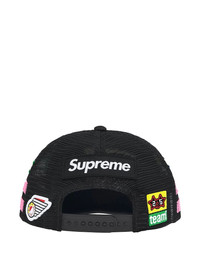 x SpongeBob Square Pants x Jeff Hamilton logo-print baseball cap Highlights - Black - Snap-fit fastening - Fabric-covered button at the crown - Mesh panelling - Six-panel construction - Embroidered logo to the front - Curved peak - Logo patch to the side - Stripe detailing - Logo patch to the rear Imported Composition Cotton 100%, Mesh 100%