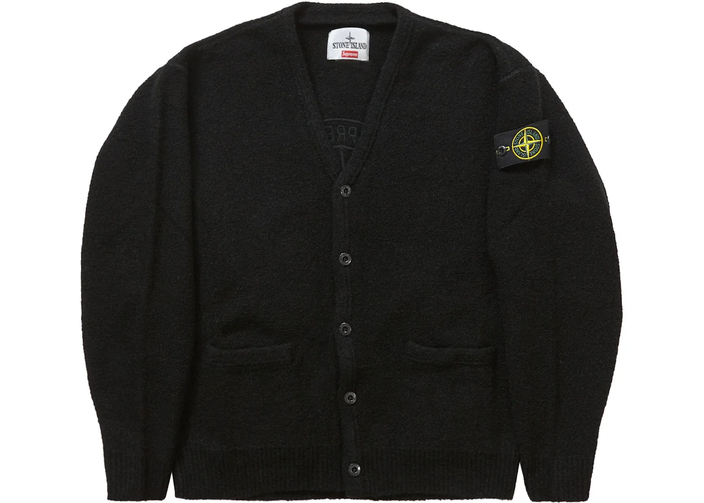 The Supreme Stone Island Boucle Cardigan Black combines Stone Island’s commitment to quality and innovation with the Supreme Brand’s streetwear aesthetic. It is crafted from premium wool blend boucle, a textured fabric that is characterized by loops and curls that creates a unique and tactile appearance. This fabric choice offers warmth and insulation, making the cardigan suitable for layering during cooler weather. This sweater comes in a sleek, solid black colorway, making it a highly versatile garment, and includes details such as a button front closure and hand pockets at the lower front sides. Other features include ribbed sleeve cuffs and hem, and a large Stone Island embroidered logo on the back. What our experts agree is a standout detail of the Supreme Stone Island Boucle Cardigan Black is the Removable Stone Island badge on the left sleeve. This sweater originally retailed for a price of $498 when it was first released on October 26, 2023. - Season FW23 - Color Black - Release Date 2023-10-26 - Retail Price 498 - Featured false - Uploaded By LL